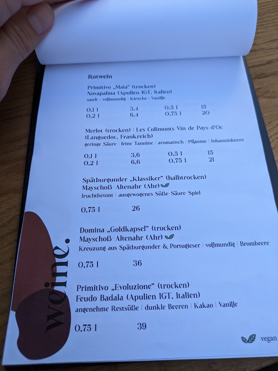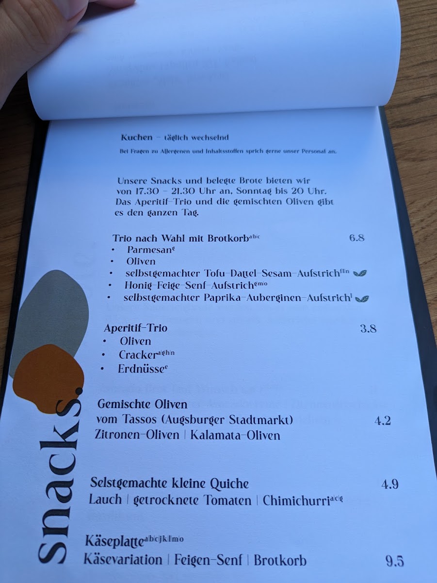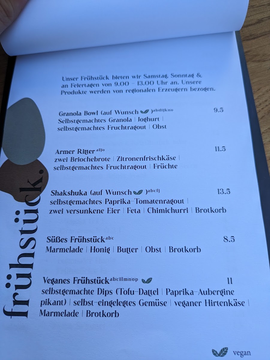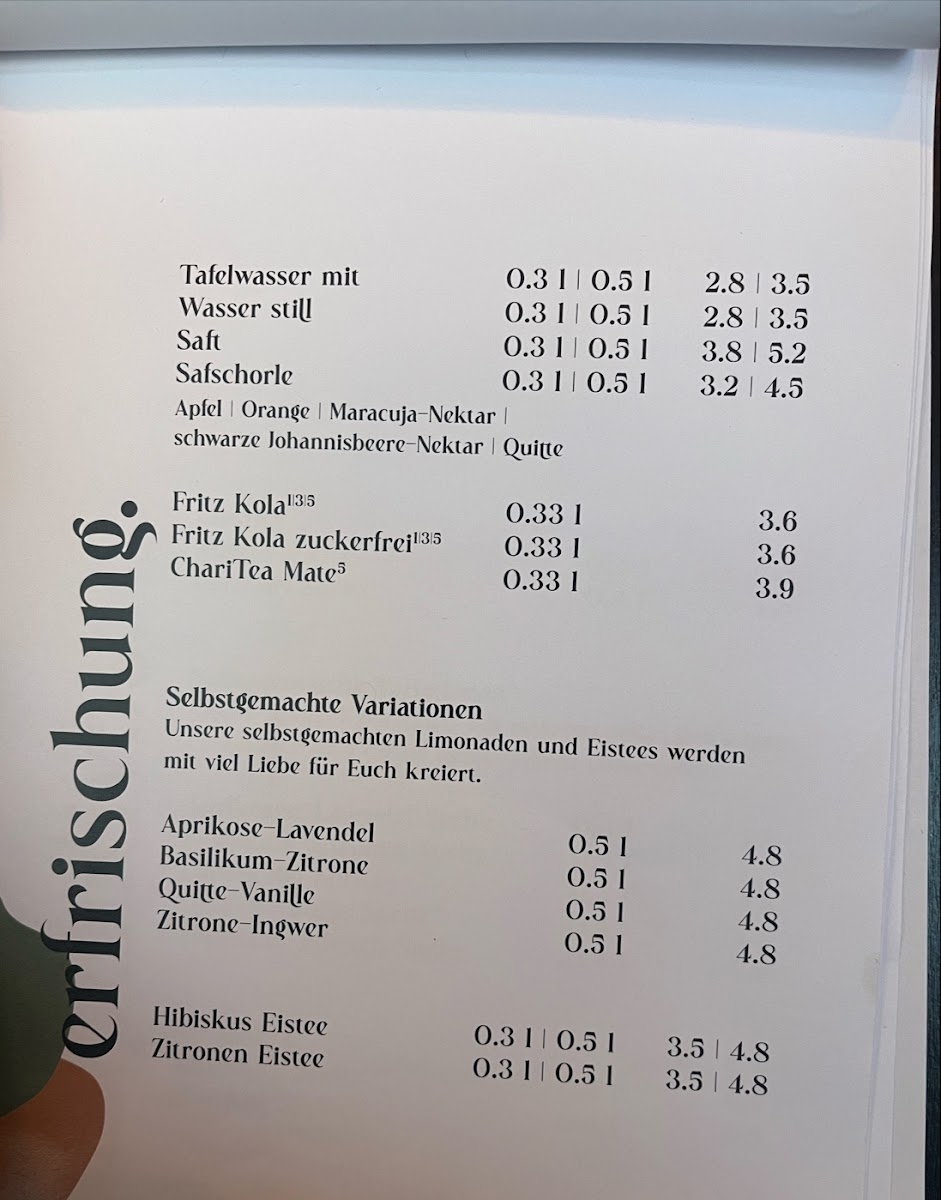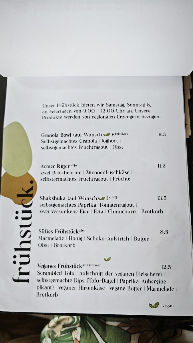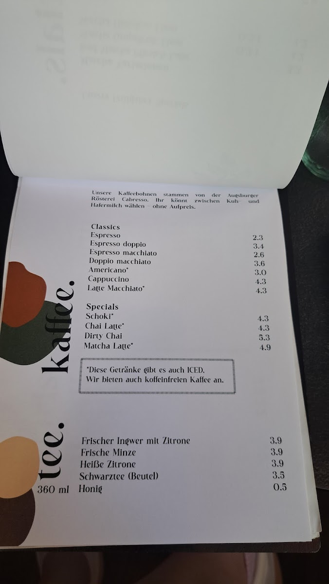 The menu at Fräulein Smilla Café & Bar features a variety of offerings suited for different times of the day, including breakfast, coffee breaks, and light meals. Visitors can expect a selection of hot and cold beverages, with options such as coffee specialties including cappuccino, chai latte, and iced matcha drinks. The food menu includes light dishes, small plates, vegan options, and a range of desserts like seasonal cakes.